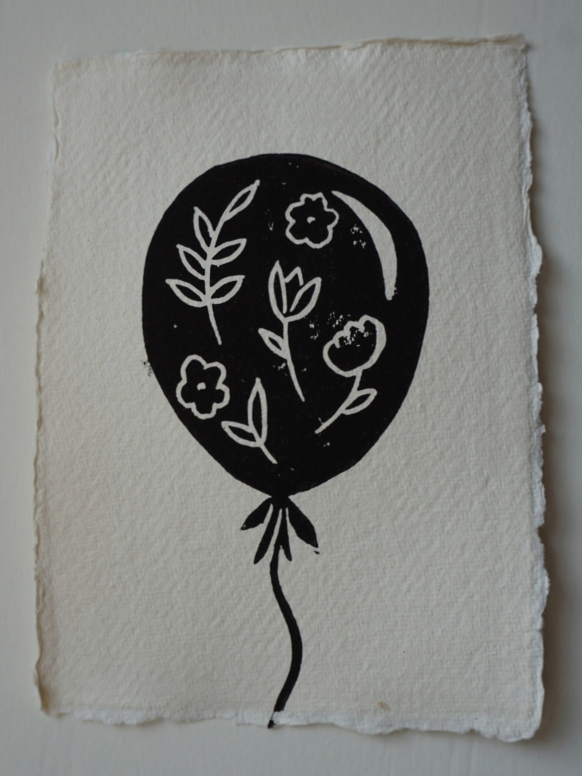 Linodruk met zwarte inkt op handgeschept (A6) papier.