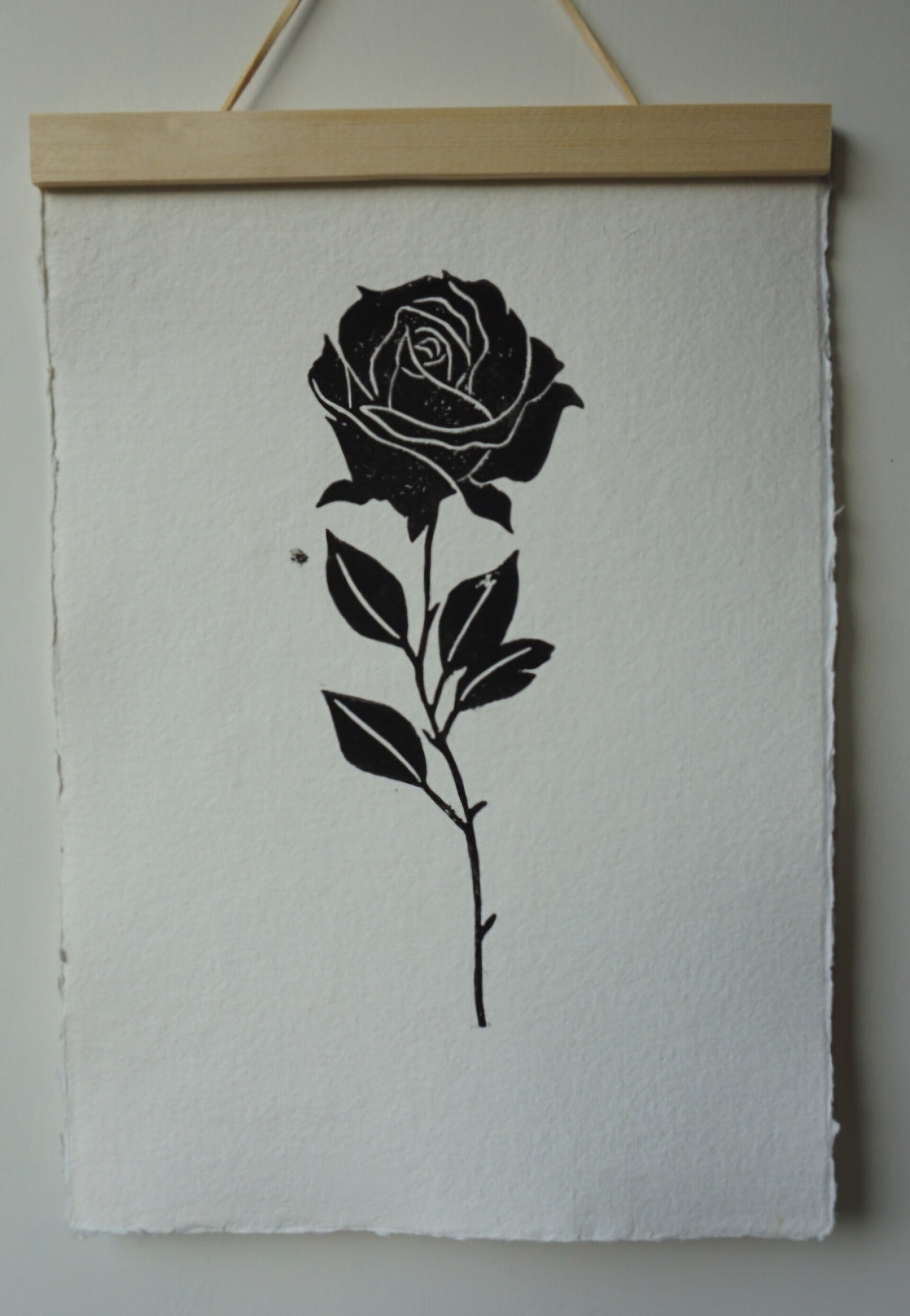 Linoprint A4 poster: linodruk met zwarte inkt op handgeschept papier.