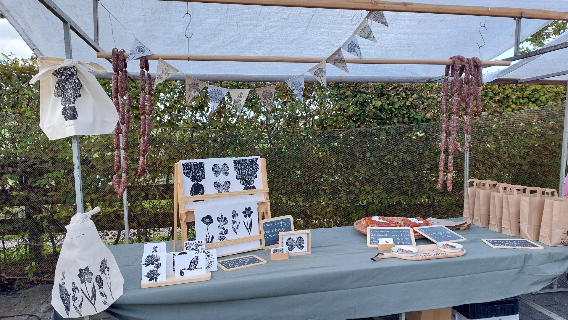 Verschillende bloemen gedrukt op jute vlaggenlijn.